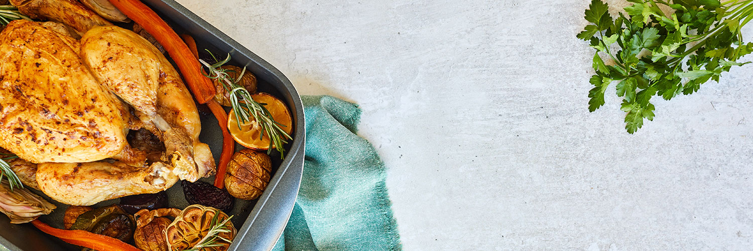 30 minutes before the end of the cooking time baste the bird with pan juices. To check your rooster is cooked insert a skewer through the inside of the thigh / deep within the meat – if the juices run clear the bird is ready. If the juices are pink put it back in the oven and check at 10 minute intervals. After cooking allow to rest uncovered for at least 30 minutes before carving