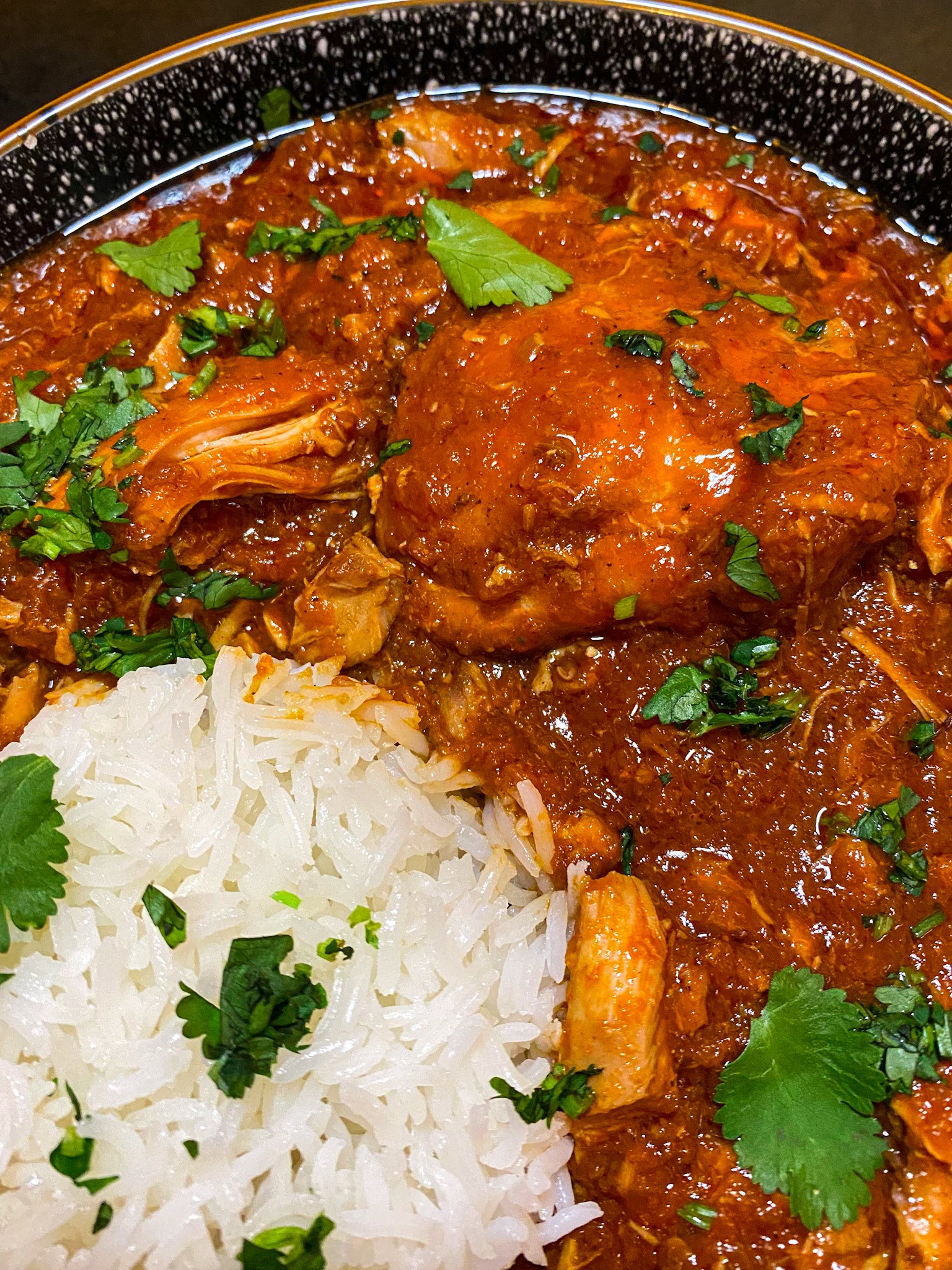 Add the fried chicken along with the rest of the stock and simmer uncovered for 30/40 minutes, stirring occasionally until it reduces to a stew like consistency.