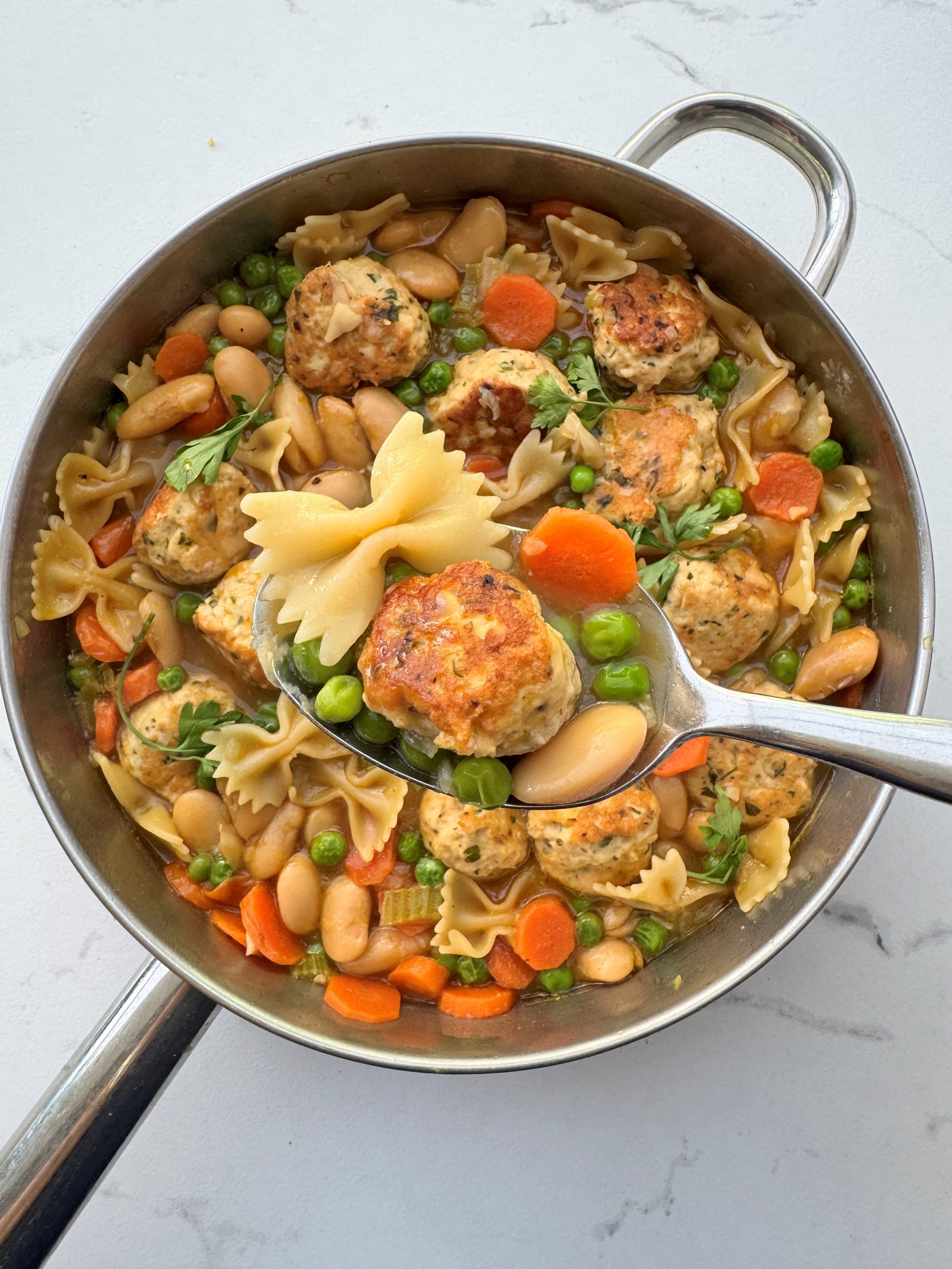 These joyous bite sized chicken balls are so flavoursome and truly delicious. They soak up the wonderful flavour of this gorgeous golden stock and deliver a fresh, light and super tasty dinner.