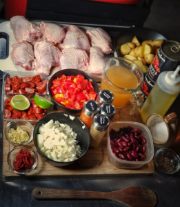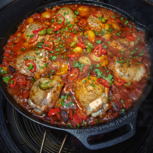 After 10 minutes, taste for seasoning then add the chorizo back to the pan and nestle the chicken in to the sauce